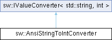 Public 类型 继承自 sw::IValueConverter< std::string, int > | |
