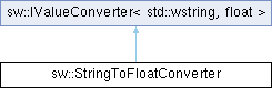 Public 类型 继承自 sw::IValueConverter< std::wstring, float > | |