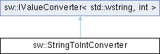 Public 类型 继承自 sw::IValueConverter< std::wstring, int > | |